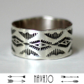 | 【デザイン】 | インディアンジュエリーの新入荷です。伝統的なスタンプワークで表・裏に繊細で高い技術をを感じさせる細かい紋様が魅力的です。ボリューム・存在感の有る逸品です。 |