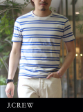 | 【デザイン】 | J.CREWよりアメリカ買付商品の入荷です。飽きの来ない定番のボーダーTeeなので、これからの時期には重宝するアイテムです。変則的なボーダー柄でセンスの良さが光るモデル。バスクではなく、通常のTシャツタイプですのでボートネックが苦手な人にもオススメのTシャツです。パンツも選ばず一枚で着てもサマになる万能Tシャツになります。 |