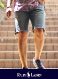 RalphLaurenより、新作の入荷です。ストーンウォッシュ加工により、かなり色落ちさせたデニムをカットオフにしたデザインです。すっきりとしたシルエットにフロントはジップフライ、ジップやポケットにも使い込んだ様なアタリが出ています。