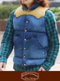 ロッキーマウンテンの代表的なアイテムであるダウンベストのデニムモデル |