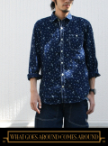 | 【デザイン】 | WGACAより新作シャツが入荷しました。今回はインディゴで染めた生地を使用しており、イカリマークを全体に散りばめたデザインです。また、前立部分にセルヴィッジを使用、前立の裾にはお馴染みの鍵のマークを刺繍するなど、見えない所にもこだわりを落とし込む、このブランドらしいアイテムです。 |
