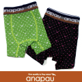 | 【デザイン】 | anapauが得意とするアニマルドットシリーズです。高品質なストレッチ素材の世界的ブランドのLYCRAを使用し体にしっかりフィットして美しいラインを魅せてくれるボクサーパンツです。繊細な股部には一般的なオーバーからの縫い合せでなく、直接フラットシーマで縫い合わせる事によって、限りなくフラットに近い縫製を施しています。ローライズながらも若干ゆとりのある股上、股下も短過ぎないように、日本人体型向けにデザインされています。 |