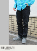 | 【デザイン】 | ヨーロッパのENGINEERED GARMENTSと称される、デンマークの新鋭ブランド、HAN KJOBENHAVN/ハン コペンハーゲンより新作が入荷しました。今回はスキニーの入ったブラックデニムパンツです。履き心地、フィット感を追及するためにやや腰回りは大きめに作られており、膝上から裾にかけてタイトになっているのがポイントになります。フロントはボタンフライ仕様になっており、HAN KJOBENHAVNの頭文字「h」を象ったトップボタンです。またバックスタイルのベルト部分にはレザーパッチを採用しており、使い込むたびにアジが出てきます。 |