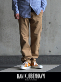 | 【コメント】 | デニムのモデルが多い中、満を持してリリースされたチノモデル。ラインの効いたシンプルながらも個性的なデザインですので、HAN KJOBENHAVN好きな方に是非オススメの逸品です。 |
