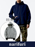 | 【デザイン】 | 脇下・首裏はメッシュ素材に切り替えることができ、春夏仕様にアップデートが可能となっています。右指ぬきリブや・NFロゴ刺繍などnarifuri オリジナルディテールも備えています。| 【素材】 | INVISTA社に別注をかけ独自に開発したnarifuri オリジナルCORDURAポンチ素材を使用したパーカー。ハリのあるスウェットのような肌触りのコーデュラポンチは、非常に高い耐摩耗性を持ち、バックパックの擦れなど日々のハードな着用に耐えうる設計に。また、軽量性に加え、吸水速乾性をも備え自転車だけでなくあらゆるスポーツでの着用が可能となっています。