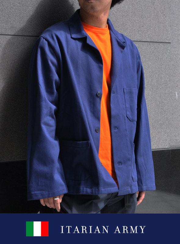 青みがかったネイビーが特徴的な、幅広いシーズンで使える丈夫なワークジャケットです! MODEL: 174cm |
