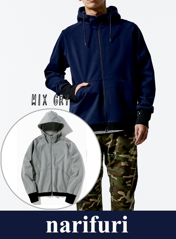 | 【デザイン】 | 脇下・首裏はメッシュ素材に切り替えることができ、春夏仕様にアップデートが可能となっています。右指ぬきリブや・NFロゴ刺繍などnarifuri オリジナルディテールも備えています。| 【素材】 | INVISTA社に別注をかけ独自に開発したnarifuri オリジナルCORDURAポンチ素材を使用したパーカー。ハリのあるスウェットのような肌触りのコーデュラポンチは、非常に高い耐摩耗性を持ち、バックパックの擦れなど日々のハードな着用に耐えうる設計に。また、軽量性に加え、吸水速乾性をも備え自転車だけでなくあらゆるスポーツでの着用が可能となっています。